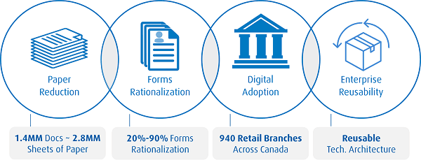 The business case was built using paper as a currency and, after three months in production, the standardization of processes and the elimination of all paper forms; means the initiative is tracking to deliver savings of CAD$132 million ($98.2 million) annually.