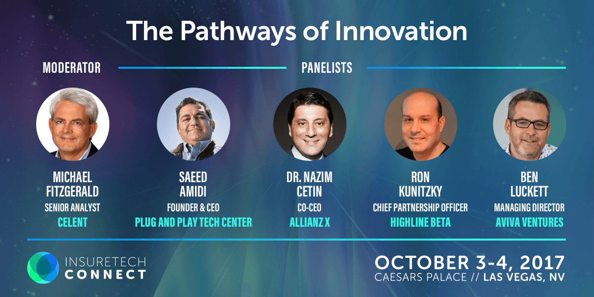 My main takeaway from ITC was the diversity of approaches to making innovation work in insurance. I moderated a fantastic panel of insurance innovators in the session “The Pathways of Innovation”. Saeed Amidi, Founder and CEO, Plug and Play Tech Center, Dr. Nazim Cetin, Co-CEO, Allianz X, and Ron Kunitzky, Chief Partnership Officer, Highline BETA shared their experiences in making innovation work.