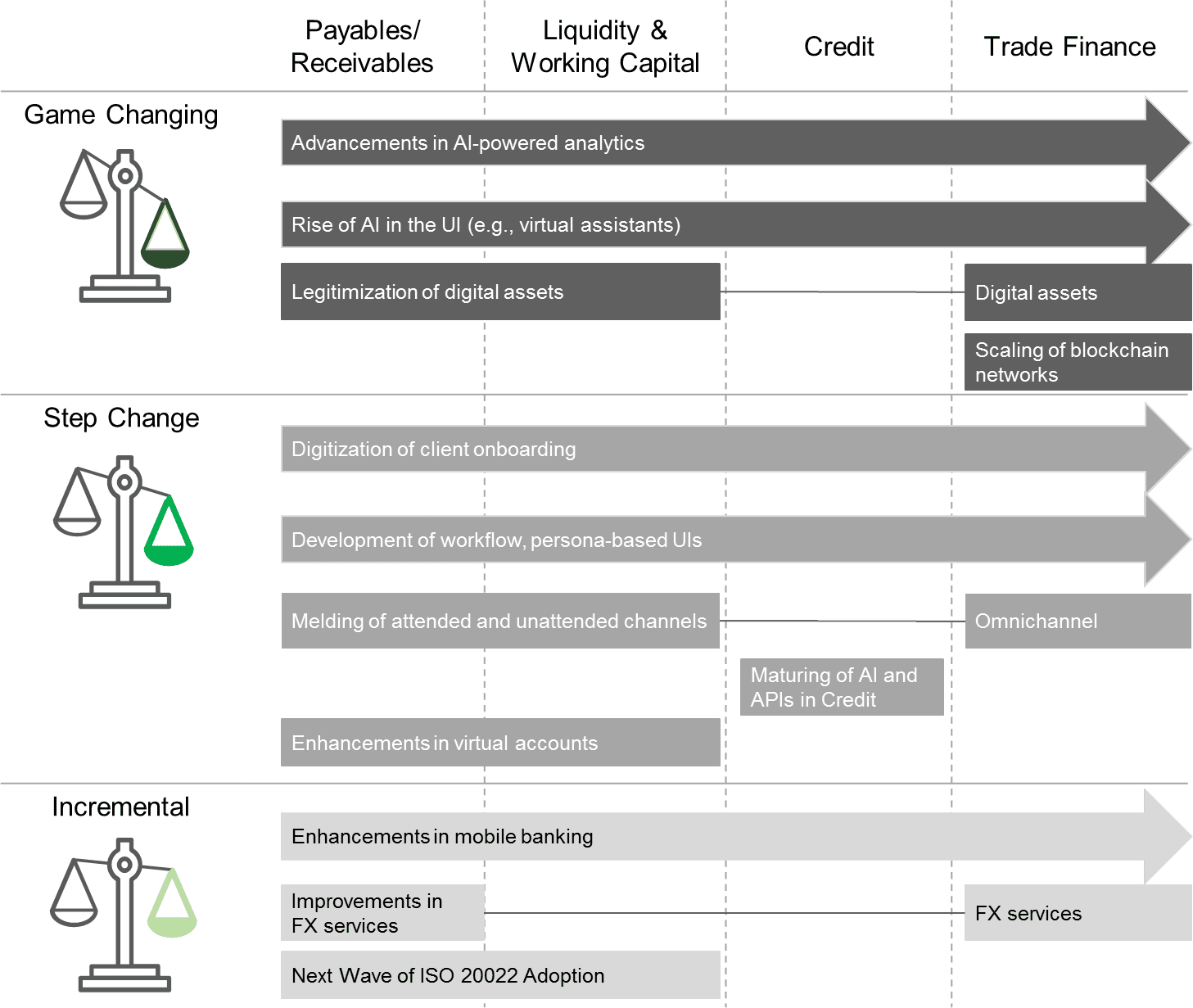 The opportunity to disrupt has never been greater in corporate banking. The likelihood of being disrupted has also never been greater. Technological advancements, venture capital, and open banking are lowering the barriers to entry and thereby heightening competition. Banks can tip the competitive scale in their favor if they plan their technological road map carefully. To help bankers plan, we overview a dozen trends that they should take into consideration as they chart both their strategic and tech course.