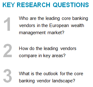 This report, the final in a set of three, examines the leading European vendors of core banking platforms. The following vendors are included: Avaloq, ERI Bancaire, Sopra, and Temenos. Infosys, Oracle, and SunGard/FIS did not participate in the study.