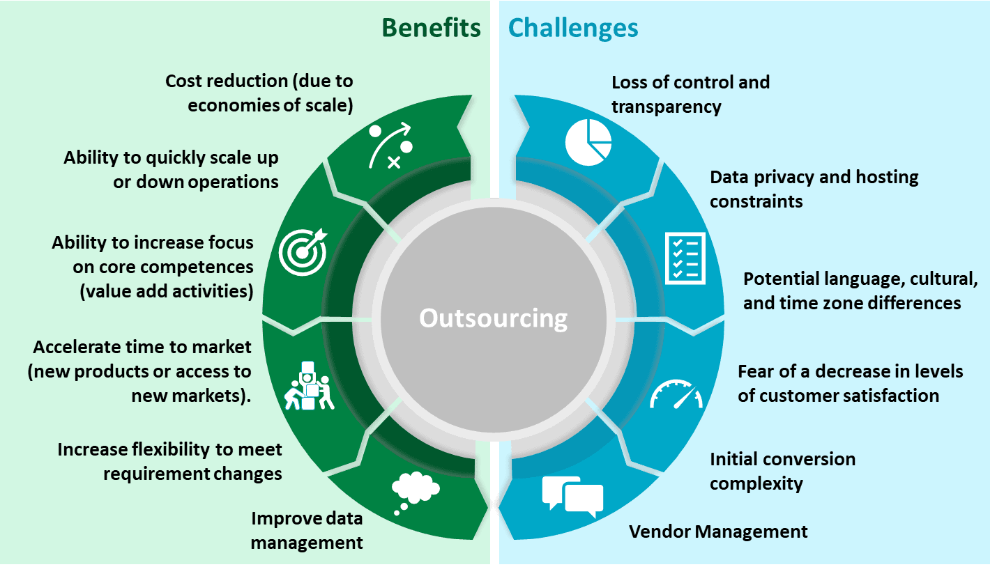 Along with cost reduction, the ability to scale operations and enter a new market or offer a new product quickly is a major attraction of outsourcing. However, adoption is challenged by the loss of control and operational transparency