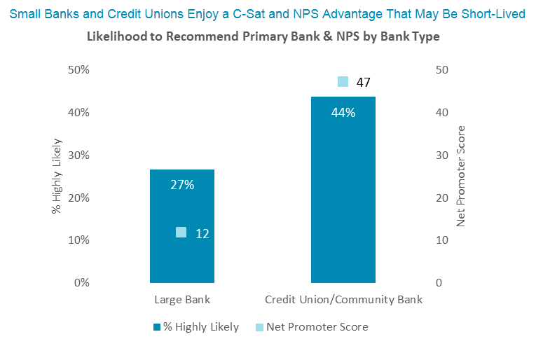 Small institutions have a measurable customer service advantage over big banks in many areas. They can't afford to rest on their laurels, however. Today’s advantage may be tomorrow’s liability.