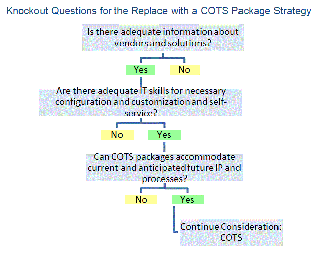 - Replace with a commercial off the shelf (COTS) package.