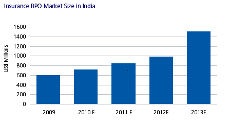 The BPO market in India’s domestic life insurance business is expected to experience tremendous growth in the near future, from US$720 million today to $1.5 billion in 2013. Carriers are increasingly evaluating specialized vendors for noncore as well as core service areas.