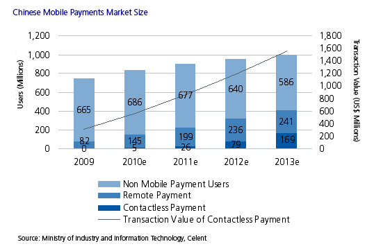 China will soon be the largest mobile payments market in the world. China's mobile payments market is expected to soar 48% year on year to 410 million users by 2013.