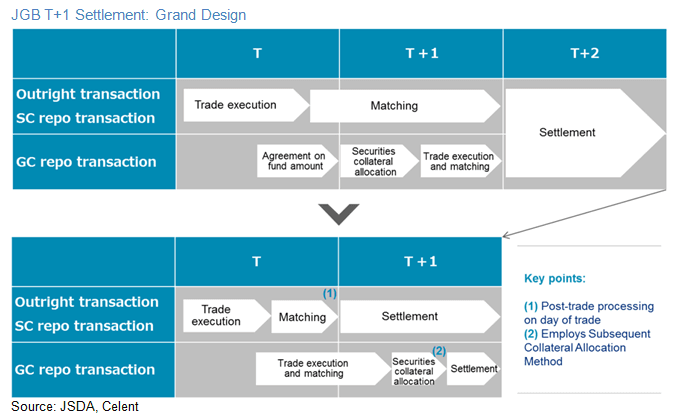 - Initiatives to shorten the settlement cycle for JGBs and securities.