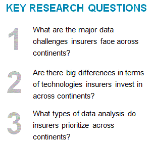 This report provides the results of our recent Big Data survey, with focus on differences across four regions (Asia-Pacific, Europe, Middle East, and Africa [EMEA], Latin America, and North America). It also describes some best practice examples Celent has gathered in the frame of its Model Insurer program over the last few years.