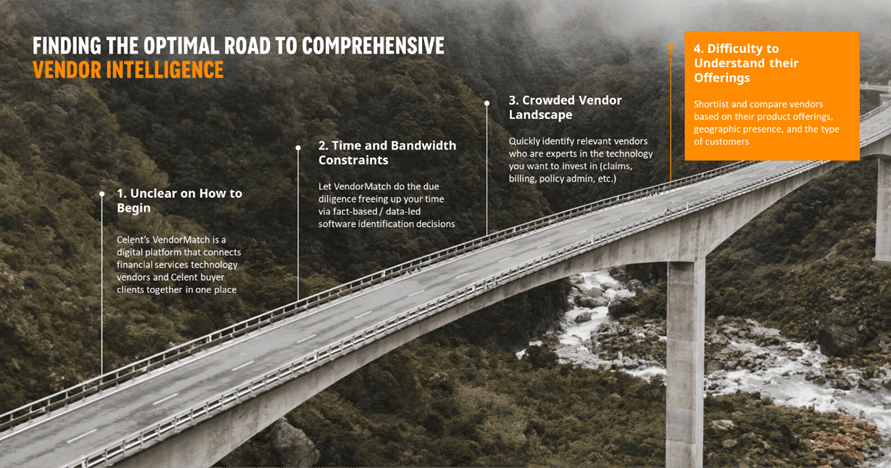 We think VendorMatch Select is the perfect place to help insurers, consulting and private equity firms meet the most relevant vendors and their solutions. For vendors, we expect VendorMatch Select to generate more qualified leads and therefore faster decision making from their target clients. Learn how to get listed on VendorMatch and more about our services.