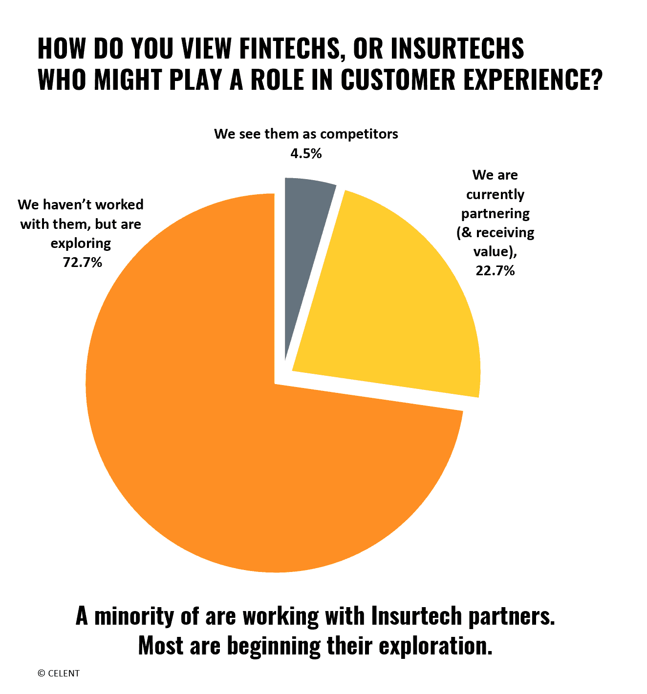Celent are no strangers to this challenge. In 2017, we wrote “Why Are There No Drones in Life Insurance”, while more recently, we’ve continued our focus: Innovation Is Dead - Long Live Innovation!. We’ve also recently conducted snap-polls on the topic of innovation and the customer’s experience: Life Insurance Customer Experience – in which we asked “How do you view fintech or insurtech (as partners or contributors) who might play a role in customer experience?” The large-majority response was “Nothing yet, but exploring” with a minority who view them as competitors.