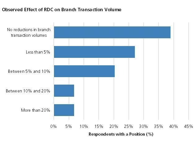 Now that the dust has settled on remote deposit capture, RDC, for commercial customers, a relatively small number of financial institutions are looking towards measured expansion of the technology to include wealth management, micro business and private banking clients. Some even contemplate making RDC available to a broad consumer base using suitably equipped mobile phones as the image capture device (a.k.a. Mobile RDC). Yet compared to the meteoric adoption of commercial RDC, this subsequent market expansion is moving at a snails pace. What’s the hold up? More specifically, beyond a handful of financial institution pilots, why have so few banks launched initiatives? The most commonly cited adoption barrier is risk. In particular, some argue, the risk of users depositing the same item more than once. In addition, the FFIEC guidance, Risk Management of Remote Deposit Capture, January 2009, admonishes financial institutions to undertake careful risk mitigation and controls when deploying RDC, including determining which customers are suitable for RDC, training them appropriately, and developing appropriate systems monitoring and reporting capability. Some financial institutions have concluded that attaining all these requirements amidst serving a customer base as potentially vast as the consumer or small business market is untenable – or at least more trouble than it might be worth. Given the state of things in financial services, who could fault a financial institution for being risk adverse? Yet, something tells me that risk is only part of the story – or worse, a convenient justification for inaction. The larger challenge for financial institutions contemplating adopting mobile RDC is what to do with all their branches. Over eighteen months ago, Celent surveyed over 150 commercial RDC deploying financial institutions and found that even then, in RDC’s formative years, a third of banks experienced a significant reduction in branch transaction volume as a direct result of RDC (Figure 1). Since that survey fielded, total RDC client adoption has more than doubled, displacing more branch traffic. A significant small business or consumer RDC initiative would have a more profound impact.