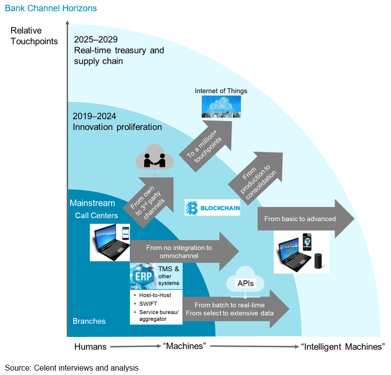 コーポレートバンキングチャネルで今後起きるのは、チャネルおよびインテリジェントマシンの急増である。